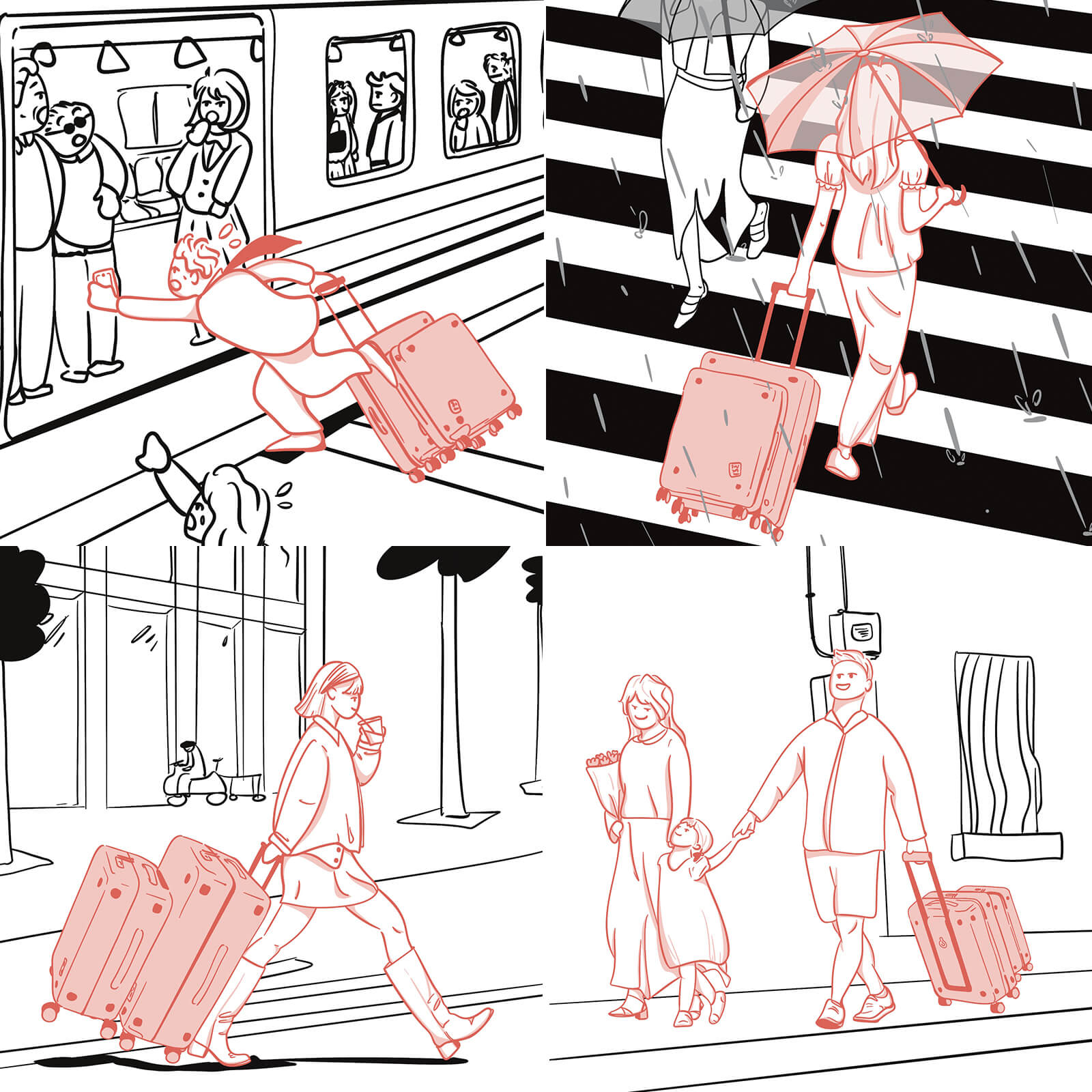 電話を取る時も、傘をさす時も、大小のスーツケースが一体化すれば、片手でらくらく移動できます。特許取得のマグネット連結で、旅先でのストレスを減らし、どんな状況でもスムーズな移動をサポートします。