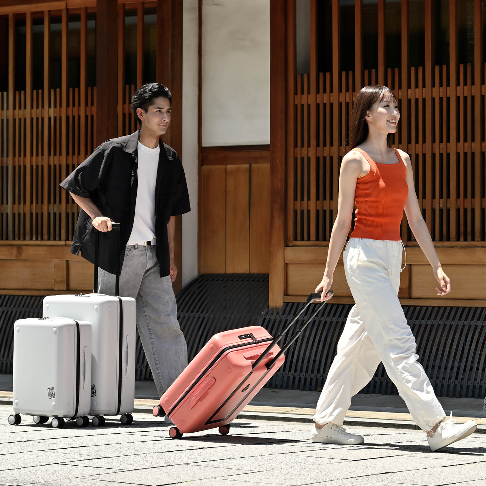 静音キャスターとTSAロックで、ストレスのない移動を実現。