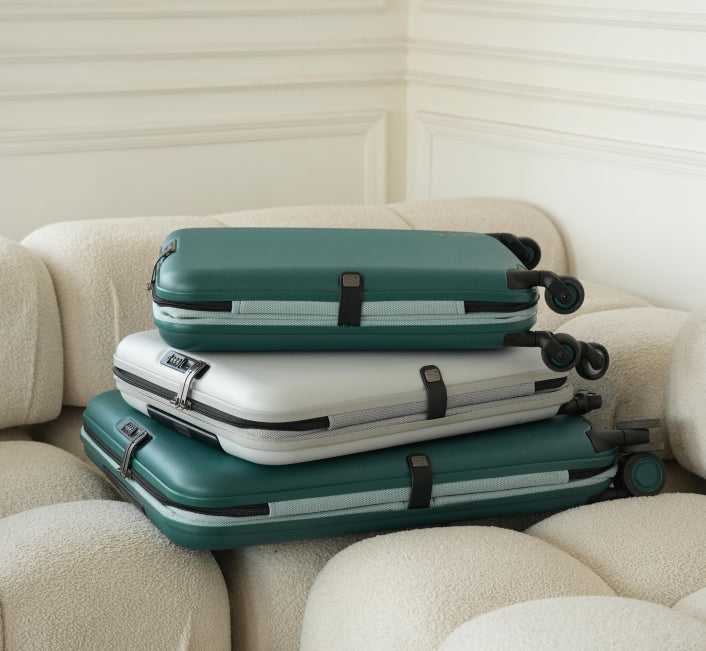 2025年には、革新的なサステナブルシリーズ「Pebble」を発表しました。外装は産業廃材を再利用した4層PC素材を採用し、内装には再生ピーチスキン生地を使用。耐久性と手触りの両立を実現しました。さらに、JOLLYING独自の折りたたみ構造により、30インチの大型スーツケースに20Lのバッグをそのまま収納可能。空間の無駄を削減し、使い方の可能性を広げます。