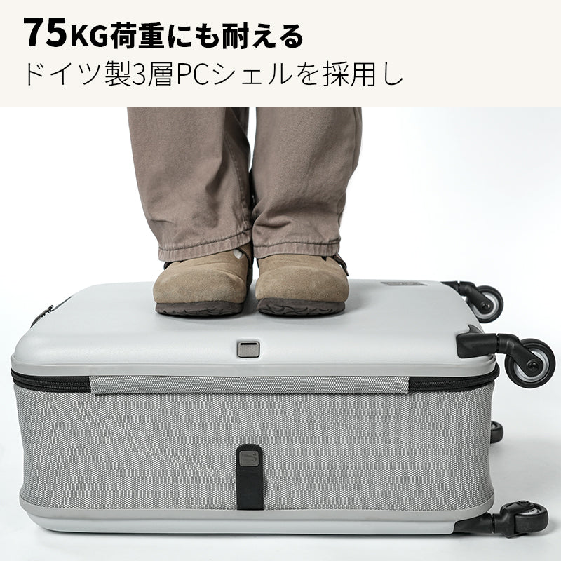「PEBBLE(ペブル)」は、デザイン性と実用性を兼ね備えた折りたたみ式スーツケース。