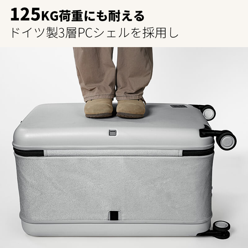 耐荷重設計 × 強化フレーム構造で、荷物の重さをしっかりサポート。重たい荷物を詰めても、本体の歪みや走行への影響を最小限に抑えます。長旅や出張でも、ずっと頼れる相棒に。